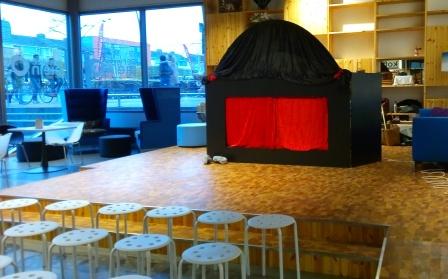 Praktische informatie: Het mobiele, kleine theater is zo gebouwd,